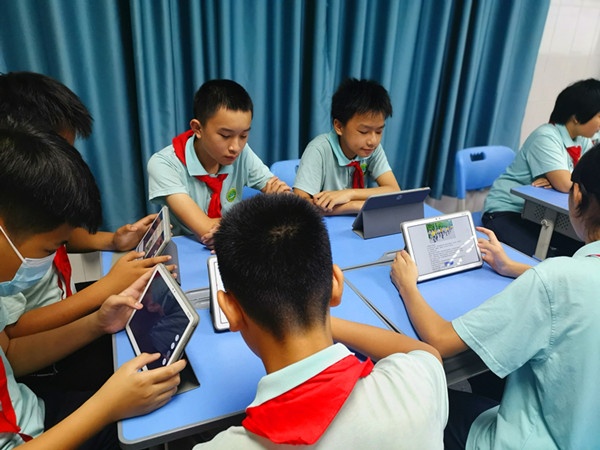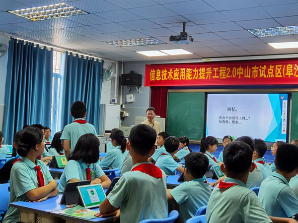 第一環(huán)節(jié)由阜沙鎮(zhèn)科學學科帶頭人馬成海副校長上展示課,課題是六年級科學《網(wǎng)上學習——我的綠色生活》。馬校長利用信息技術(shù),指導學生通過平板機進行網(wǎng)上學習,從選定主題、搜集信息、上傳資料、交流學習四個環(huán)節(jié)進行教學。他指導學生如何選定主題,如何圍繞主題利用網(wǎng)絡搜集信息、處理信息,并在此過程中了解為什么要進行垃圾分類,減少廢棄物,重復利用物品以及循環(huán)再造可回收物等知識;同時初步認識一次性用品對環(huán)境的危害,重點引導學生如何去表達交流分享,并在此過程中懂得人與環(huán)境密切相關,進而在日常生活中踐行綠色環(huán)保的生活理念。整節(jié)課馬校長把信息技術(shù)與教學深度融合,培養(yǎng)學生借助網(wǎng)絡學習的方法和習慣。