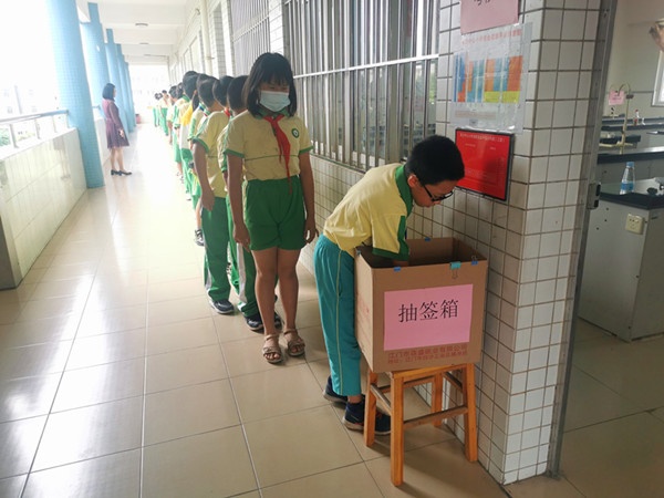 此次科學實驗操作考核的內容是:“用天平測量液體的質量”“電路的連接”“讓氣球漲起來”“紙橋承重實驗”“測量液體的溫度”“顯微鏡的使用”六個實驗。阜沙中心小學科學組精心準備,考試流程完全按照中山市科學實驗考核流程進行,把五年級同學分成每組12人,兩組為一批,每批考生先是抽簽定題,然后根據選題進入考場對號入座,由監考老師宣布考核守則,考生單獨操作完成實驗,根據實驗結果寫上實驗結論。本次考核也是阜沙鎮教體中心對學校的抽考,聘任初中理科老師監考,按評分標準現場打分,并增加了科學理論知識考核,檢查考生科學知識的掌握情況。