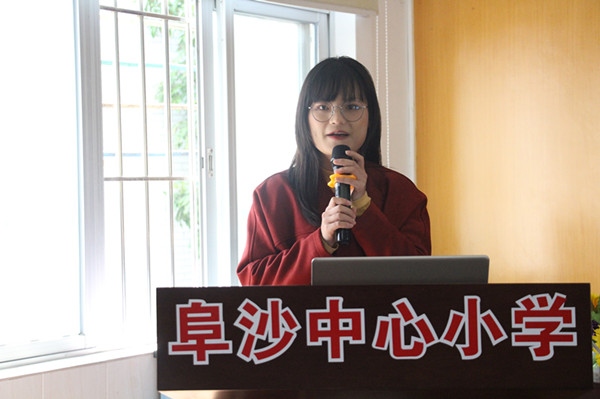 接著,由到貴州六盤水支教的徐淑萍老師作支教分享。五月份,徐淑萍老師帶著中山人的期望,帶著自己的滿腔熱情,到貴州省六盤水市進(jìn)行了為期一個(gè)月的支教工作。在支教的這一個(gè)月中,徐老師兢兢業(yè)業(yè),充分展示了中山人博愛、創(chuàng)新、包容、和諧、奉獻(xiàn)的精神,給當(dāng)?shù)氐慕逃虒W(xué)工作注入了新的理念,帶去了教育的曙光和希望。她的“贊”“驚”“借”“助”“促”“謝”六字箴言,給她的支教工作賦予了無限的色彩。