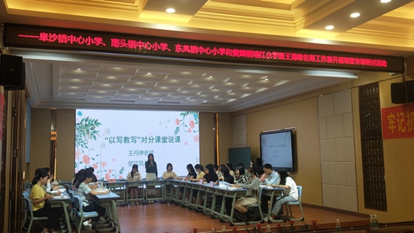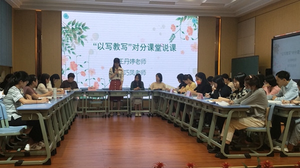 接著,參會老師共聚一堂,對小學習作教學進行互動交流?;咏涣鲝纳险n老師進行說課開始,兩位老師結合對分課堂教學的特點,闡述了她們兩節課的教學思路,目標達成。接著,各學校代表以及與會老師分別就這兩節課紛紛發表了自己的看法,大家暢所欲言,點亮著一個個耀眼的知識火花。