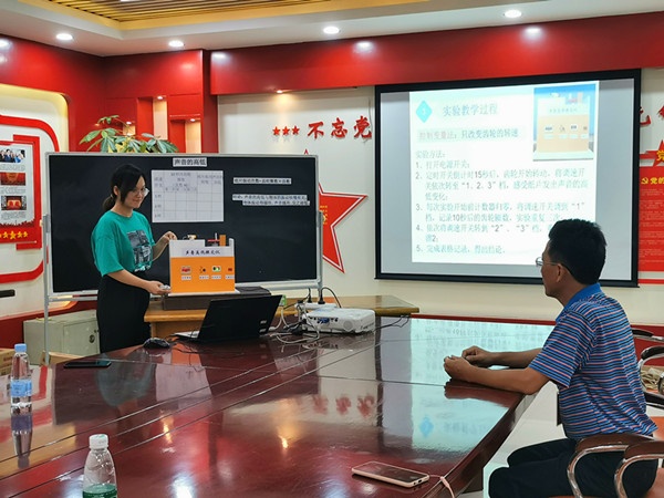 為促進實驗教學創新,推動中小學課程改革,進一步發揮實驗教學的育人功能,推進實驗教學研究,提高理科實驗教學水平,促進教師實驗技能發展,阜沙中心小學重視科學老師專業發展,積極推動實驗教學創新。根據《中山市教育和體育局關于開展2020年中山市中小學實驗教學系列評選活動的通知》要求,積極準備,研究說課內容, 理解實驗教學相關內容和要求,實驗創新,找準創新點,從實驗教學目標、實驗方案設計、實驗操作要領、實驗數據處理、教學反思與自我評價等環節,打磨說課流程。在比賽中,董夏老師語言流暢,表述清晰,用自制的實驗儀器演示,有具體的數據,分析歸納出聲音高低與數據的關系,使實驗可見、可算,培養學生跨科思維,符合STEM課程理念。自制實驗儀器具有多處創新點,數字化、定時化、可變化。董夏老師《聲音的高低》實驗教學說課實至名歸榮獲科學組第一名,將參加中山市小學科學實驗教學說課比賽。