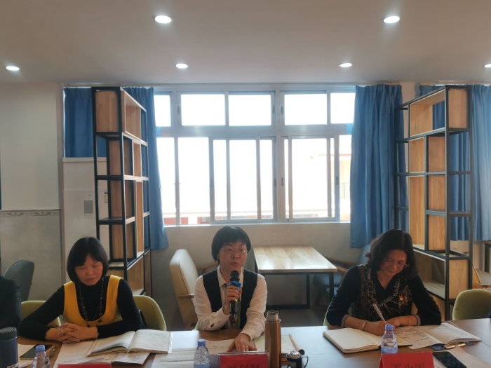 隨后是評課議課環節,兩位執教老師先談了自己的教學設計和思路,并就自己的教學環節進行了課堂反思。以研促教,共促成長,蘇彩南老師及與會老師就課堂的呈現對兩位青年教師的課堂提出了不少寶貴的建議。