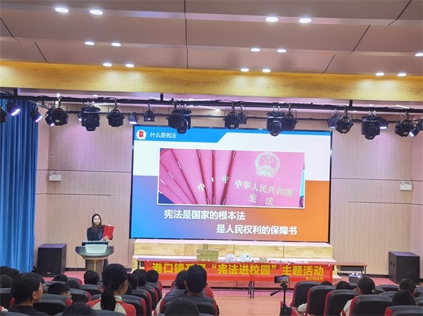 12月1日下午,廣東國融律師事務所林文理律師為學校師生帶來了一堂內容豐富的憲法專題法治教育講座。講座中,林律師以“憲法進校園”為主題,講解了國家憲法日的由來、憲法的修訂等憲法基本知識,并通過案例和問答互動等形式向同學們宣講了憲法對于青少年的意義。此外,林律師還邀請同學們通過現場朗讀憲法法律條款的形式,讓同學們對憲法有了更全面深刻的了解,讓同學們自覺維護憲法尊嚴,維護法律權威。