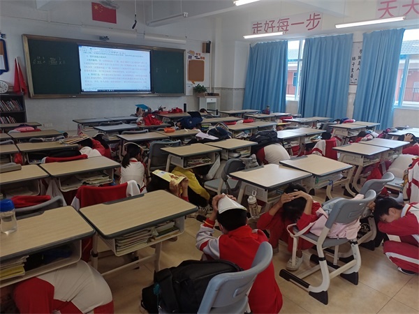 演練正式開始前,各班主任在教室內(nèi)對(duì)學(xué)生進(jìn)行了防震逃生演練的安全教育,讓學(xué)生明確當(dāng)?shù)卣鸬絹淼臅r(shí)候應(yīng)該怎么做。活動(dòng)中,二到六年級(jí)全體師生參與到此項(xiàng)逃生演練活動(dòng)中來,而一年級(jí)的師生則在一旁進(jìn)行觀摩。隨著第一次警報(bào)鈴響起,在教室正常進(jìn)行學(xué)習(xí)活動(dòng)的師生們立即拿起書包等物品擋著頭部,蹲在書桌下方或旁邊進(jìn)行避險(xiǎn)。當(dāng)?shù)诙尉瘓?bào)鈴響起的時(shí)候,全體師生按照演練預(yù)案規(guī)定的疏散路線,緊張有序地撤離到了學(xué)校的大操場,整個(gè)撤離過程用時(shí)1分53秒,期間沒有發(fā)生擁擠或踩踏等意外情況。整個(gè)演練過程緊張、迅速,師生們的逃生動(dòng)作規(guī)范、有條不紊。 隨后,謝振森主任對(duì)這次演練進(jìn)行了小結(jié),他指出,災(zāi)難無情,生命無價(jià),小學(xué)生更要提高安全防范意識(shí),加強(qiáng)學(xué)習(xí)安全知識(shí),提高自救、自護(hù)能力,掌握在危急情況下機(jī)智逃生的本領(lǐng),并積極向家長、朋友和鄰居宣傳,讓更多的人關(guān)注安全,珍愛生命。