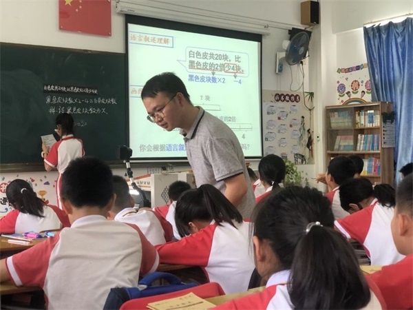 課題組成員葉露老師首先展示了《實(shí)際問題與方程(2)》這節(jié)匯報(bào)課。葉露老師精心設(shè)計(jì)教學(xué)環(huán)節(jié),圍繞課堂內(nèi)容引導(dǎo)學(xué)生在轉(zhuǎn)變題目句式中理解題意,在借助畫圖策略分析中明晰數(shù)量關(guān)系,通過小組討論進(jìn)一步總結(jié)解題方法,取得了良好的教學(xué)效果。