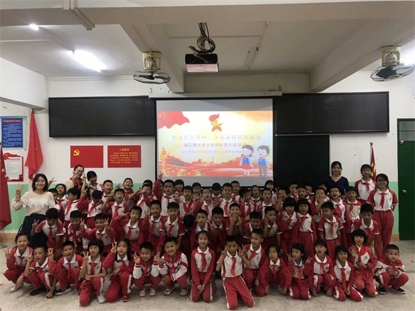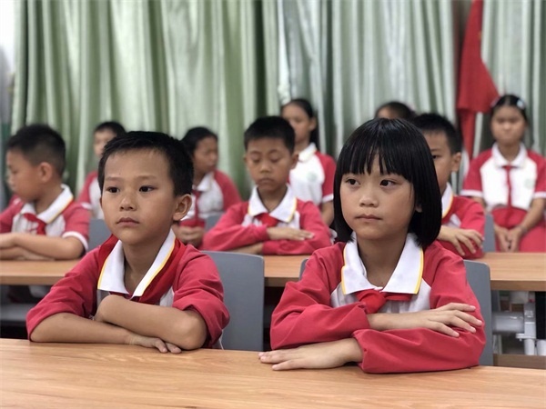 早在入隊(duì)儀式前,各班中隊(duì)輔導(dǎo)員利用隊(duì)課展開入隊(duì)的系列教育,學(xué)生們不僅了解了中國少年先鋒隊(duì)的隊(duì)名、創(chuàng)立者、領(lǐng)導(dǎo)者、隊(duì)旗的含義等,還學(xué)會(huì)了正確佩戴紅領(lǐng)巾、敬隊(duì)禮、呼號(hào)和唱隊(duì)歌等,光榮感和組織歸屬感油然而生。
