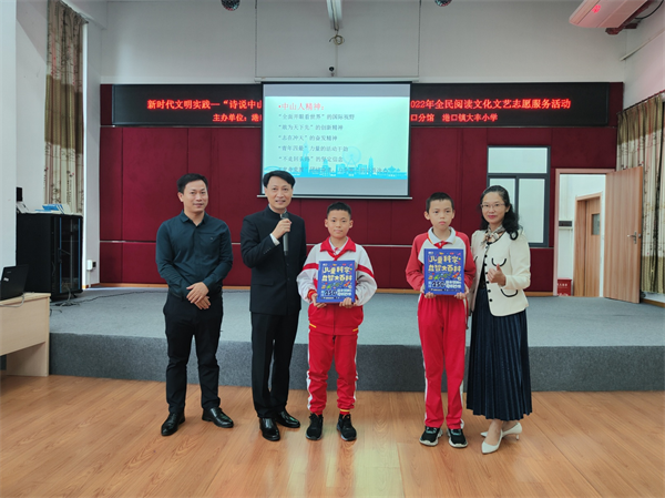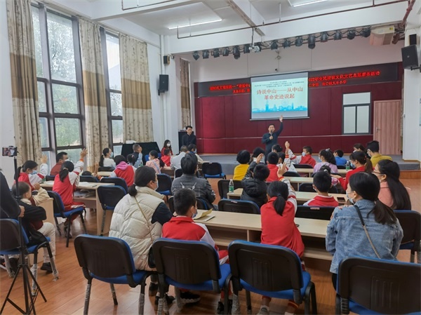 為了讓孩子了解中山革命史跡,了解中山名人的事跡,體驗先輩的愛國情懷、慈善思想、務實作風,11月6日上午,港口鎮宣傳文化服務中心、中山紀念圖書館港口分館、港口鎮大豐小學聯合邀請了中華詩詞學會會員、廣東楹聯學會副會長、中山市中華詩詞楹聯學會會長高松老師,開展了一場主題為“革命詩中學黨史,從中山革命史跡說起”的閱讀推廣活動。