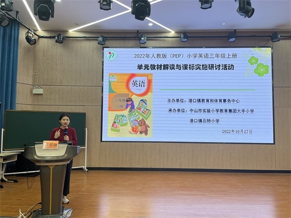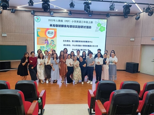 金秋十月,碩果飄香,為了深化小學英語課堂的教學改革,提高課堂教學質量,幫助老師們整體把握課程標準,落實學科核心素養,深度解讀教材,助力教師專業化成長,10月27日下午,經中山市港口鎮教育和體育事務中心主辦、中山市實驗小學教育集團大豐小學和港口鎮石特小學承辦的2022-2023學年度上學期小學英語三年級單元教材解讀與課標實施研討活動在大豐小學報告廳舉行。參加此次研討活動的有港口鎮小學英語中心教硏組組長蔡東琳老師,大豐小學黃艷冰校長、陳宇環副書記、馮秀珍主任、英語導師梁藝娟老師和陳媛芳老師,港口鎮各小學三年級英語教師及承辦單位全體英語教師,本次活動由大豐小學英語科組長陳秋霞老師主持。