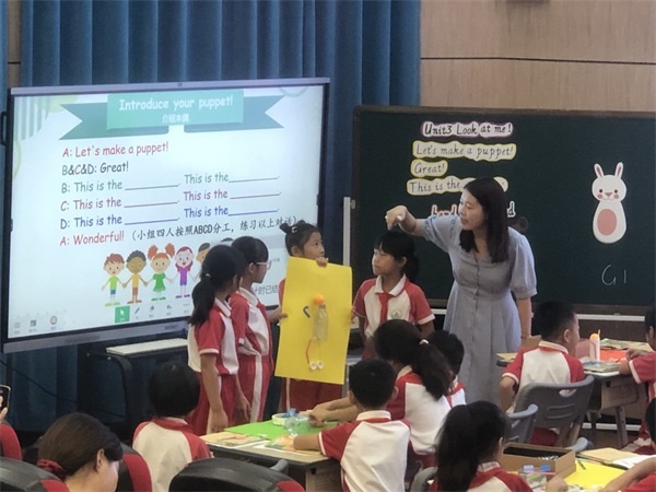 石特小學陳冰娜老師給大家呈現了一節詞句課——B Let's talk,Let's learn & Let's do部分。陳老師創設了Sarah和Mike一起做木偶的情境,將新授知識進行有效構建,通過舊物制作木偶活動培養學生在實踐中運用語言的能力、合作精神及環保意識。