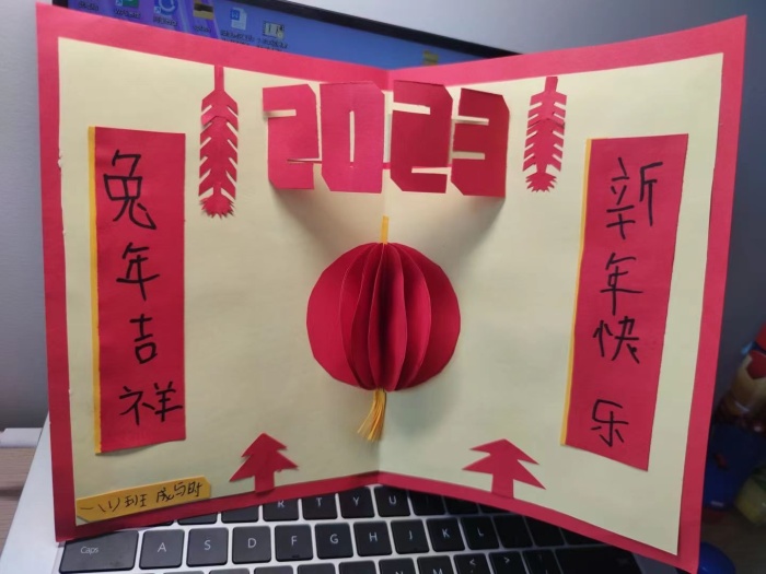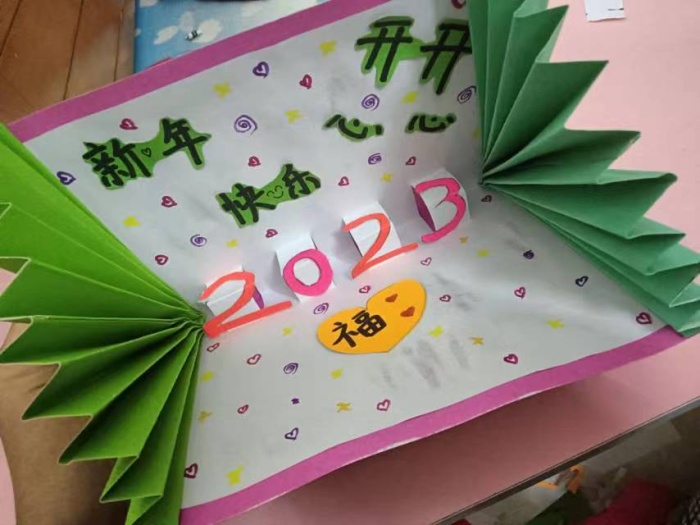 同學們用畫筆描繪心中的祝愿,用顏色構筑心中的向往。一張張精美的賀卡,一句句真誠的祝福,展示出了孩子們眼中的新年,流露出新年的氣息。