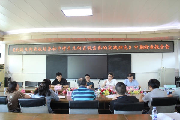 2022年6月16日下午,由港口鎮(zhèn)大南中學(xué)潘又保老師主持的中山市2020年教育科研課題《利用幾何畫板培養(yǎng)初中學(xué)生幾何直觀素養(yǎng)的實(shí)踐研究》中期檢查報(bào)告會在學(xué)校四樓榮譽(yù)室舉行,報(bào)告會邀請了中山市教育教學(xué)研究室周曙副主任,港口鎮(zhèn)教育和體育事務(wù)中心張育文主任,華師中山附中楊希副校長,西區(qū)街道教育和體育事務(wù)中心教研員梁亮亮老師四位專家蒞臨指導(dǎo),港口鎮(zhèn)教育和體育事務(wù)中心蘇少偉專干、港口鎮(zhèn)大南中學(xué)廖建紅校長及課題組全體成員參加本次報(bào)告會。