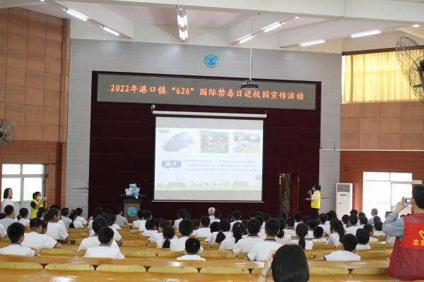 為貫徹落實市禁毒委2022年度“全民禁毒宣教月”活動要求,進一步深化禁毒預防教育工作,增加師生對禁毒知識的了解,提高學生辨別毒品、抵制毒品的能力,2022年6月15日,港口鎮“626國際禁毒日”禁毒宣傳進校園活動在大南中學舉行。港口鎮關工委、綜治辦、禁毒辦、團委、公安局等相關部門領導,大南中學師生200余人參加了活動。