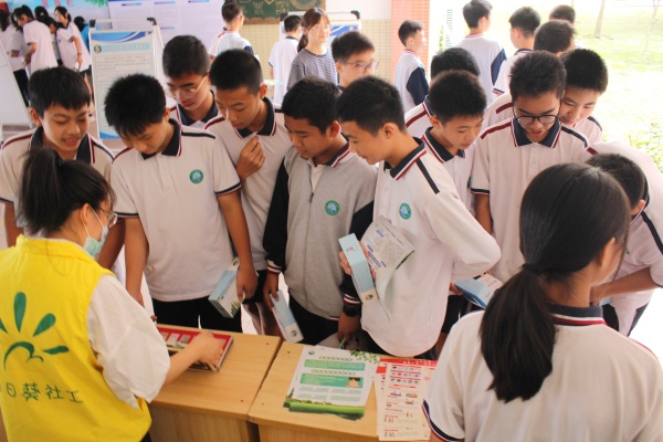 接著,向日葵禁毒社工帶領學生學習禁毒知識,社工們用通俗易懂的語言講解了什么是毒品、毒品的種類、偽裝形式以及如何遠離毒品、防范毒品等禁毒知識,提高學生辨別毒品的能力。隨后,大南中學德育處副主任宋穎帶領大家一起宣誓,全體參會人員一起宣誓,表達了自覺抵制毒品誘惑、主動參與禁毒斗爭、同享健康生活的決心。