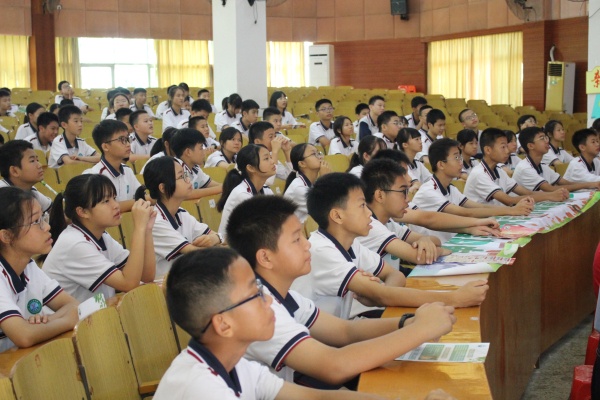 首先,港口鎮關工委副主任黃桂森講話。他回顧了虎門銷煙的歷史,號召全體師生牢記歷史使命,珍愛生命,遠離毒品,自覺抵制毒品,積極宣傳禁毒知識。