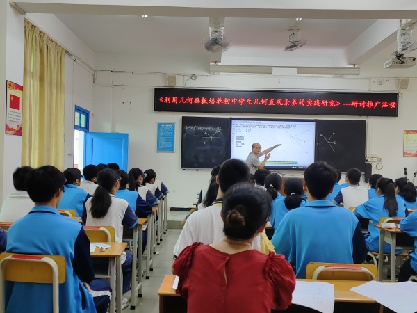 為擴大課題的輻射作用,2022年6月2日下午,港口鎮大南中學市級立項課題研討推廣活動在大南中學一樓多媒體室成功開展,本次活動得到港口鎮教育和體育事務中心蘇少偉專干、港口鎮大南中學廖建紅校長、沙溪鎮教育和體育事務中心教研專干孫彥濤老師悉心指導。參與本次活動的還有片區招生范圍內的部分小學數學老師、大南中學全體數學教師和課題組全體成員,活動由潘又保老師主持。