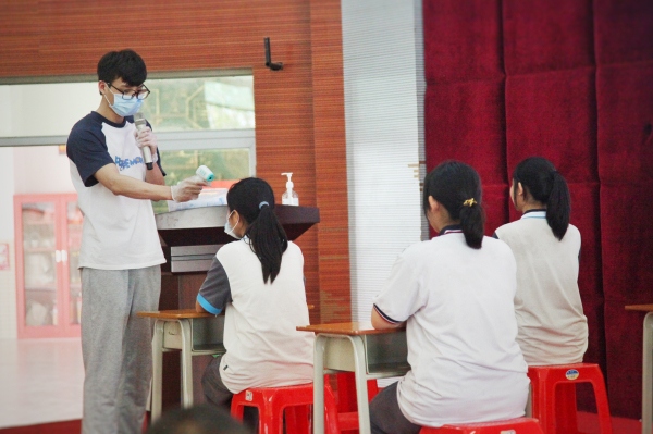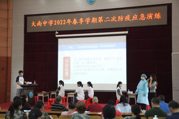 下午全體教師集中一樓階梯室舉行本學期第二次疫情防控應急演練。演練模擬上課期間發現一名有風險地區家人接觸史的學生,出現發熱、咳嗽等身體異常的緊急處置。情況發生后,由班主任采取好防護措施馬上把該學生帶到醫務室,由學校醫務人員再次詢問該學生有無14天內疫情重點地區旅居史、途徑史,或有無確診、疑似病例接觸史。發現疑似病例后,學校立即啟動應急預案,開展下一步的工作。