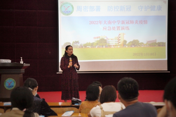 為從嚴從緊落實疫情防控,抓實抓細疫情防控各項工作,提高學校對突發疫情防控和應急處置的能力,同時也為了檢驗學校疫情防控應急預案的科學性和可操作性,確保突發公共衛生事件得到及時有效處置,有效防控疫情在學校的發生和蔓延。2022年3月18日下午,港口鎮大南中學舉行新冠肺炎疫情防控培訓及應急演練。