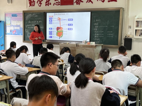 本次活動先由大南中學陳妙如老師、華辰實驗中學梁露老師就《消化和吸收》這一節進行同課異構展示。兩位老師風格各異,陳妙如老師的課穩打穩扎,以復習的方式導入新課,陳老師還結合市級課題《初中生物學教學中培養學生物質和能量觀的實踐研究》,巧妙地將生物學科的核心素養,物質和能量觀滲透到教學的各環節中去,獲得了較高的課堂效率;梁露老師的課程設計能對標新課程標準,落實核心素養中的生命觀念,以學生熟悉的美食“蛋撻”為主線,引導學生構建消化系統的組成,三大營養物質的消化等重要概念,講學稿的設計和課堂使用高度匹配,做到精講精練,隨時反饋。
