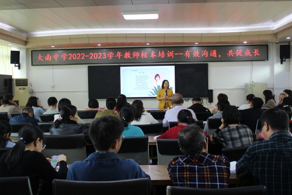 為進一步提升教師與學生、家長的溝通水平,構建和諧校園。2023年2月24日下午,港口鎮大南中學舉辦了“有效溝通,共促成長 ”的專題校本培訓。此次培訓由學校德育主任許春娜主持,國家二級心理咨詢師、家庭教育高級指導師曾麗主講,大南中學全體教師參與聆聽了本次講座。