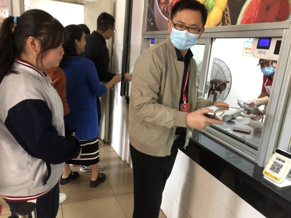 中午,檢查組一行在學校飯堂進行陪餐。與學生一起排隊打卡取餐,并與學生一起進餐,親切交談。用餐期間,周昭堅鎮長親切詢問了就餐學生對飯堂的菜品、味道的意見,并提醒學生要注意營養搭配,避免浪費。