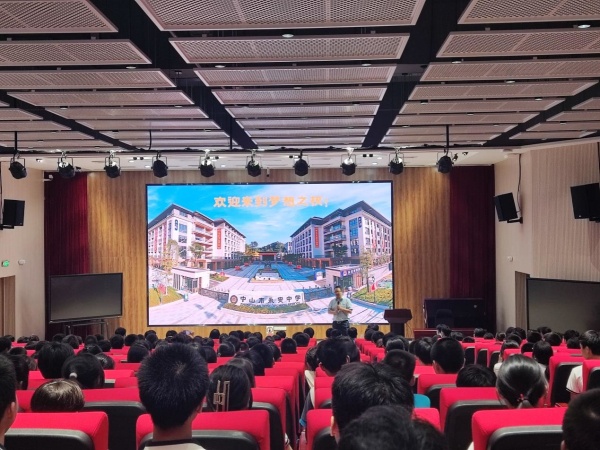 2023年4月21日上午,初三年級全體師生首先走進中山市實驗中學,在實驗中學老師的帶領下,同學們參觀了生物園、運動場、教學樓等。在老師的耐心講解下,同學們踩著名校里的每一寸土地,感受著名校濃濃的文化氣息,無不感慨萬分,心生向往——這就是我努力的方向!為堅定學弟學妹們信念,現就讀于實驗中學的本校2022屆優秀畢業生溫一瑋和鄧濤同學做了勵志發言,他們分享了初中三年的求學成長經歷和自己在中考中制勝的秘籍,并熱心地解答了學弟學妹們的十個問題。接著,實驗中學劉湘衡老師對學校的辦學理念、師資、硬件設施以及近年來取得的成績等方面做了介紹,他的發言真誠質樸,讓同學們很激動,相信定能激勵到大南中學初三學子在接下來的求學路上砥礪前行,勇攀高峰。