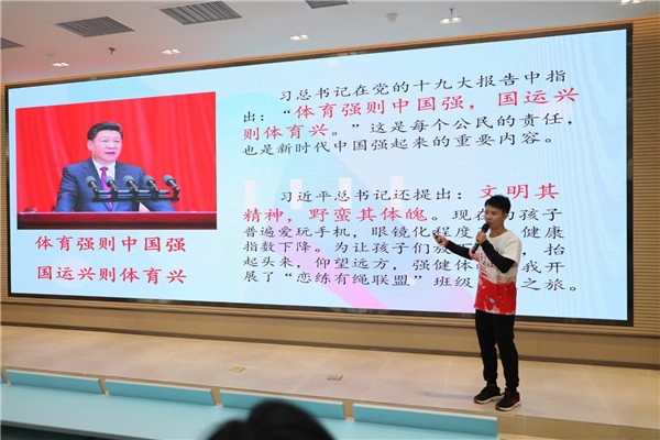 本次評選活動分為“赴各中小學觀摩特色班級文化建設”和“班主任集中展示”兩個環節。11月17日上午,評委老師們來到民主小學五(4)班,對“戀練有繩聯盟”的班級文化布置、特色文化標識、學生精神面貌等方面進行了認真查看,聆聽了學生對特色文化內涵的介紹,觀賞了全班學生演繹的班歌《繩舞少年》。評委們一致認為,該班環境布置溫馨、文化特色凸顯、學生陽光向上,特色文化建設在學生身上留下深深的印跡。11月26日的“班主任集中展示”環節,“戀練有繩聯盟”的班主任關曉明老師落落大方,一上場,他帶來了精彩的跳繩表演。隨后,播放了特色文化視頻,鮮活的畫面感染人心。接著,關曉明老師從營造文化繩、定制法則繩、揮舞活動繩、營造團結繩四個方面進行了申報陳述,精當地介紹了班級特色的創建緣由、創建歷程以及取得成效,以生為本的特色挖掘、自覺自主的文化規劃、豐富多彩的特色活動、碩果累累的特色成果,給現場的評委們和觀摩的班主任們留下了深刻的印象,現場響起了一陣陣熱烈的掌聲。經過兩輪激烈角逐,關曉明老師所任教的“戀練有神聯盟”脫穎而出,取得了優秀的成績。