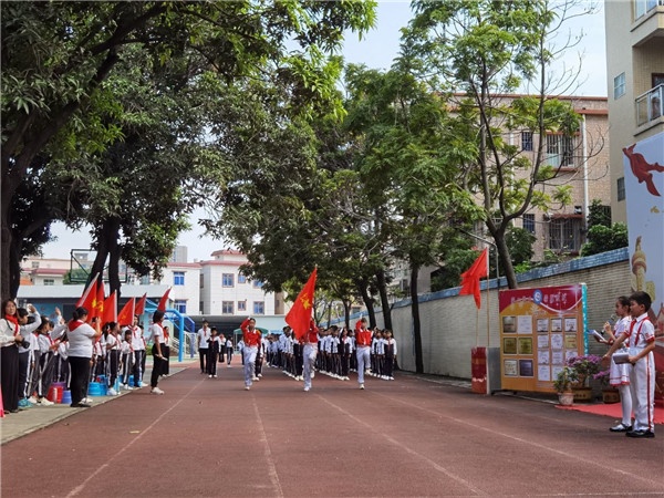 為切實(shí)抓好校園精神面貌建設(shè)和日常行為規(guī)范訓(xùn)練,規(guī)范學(xué)校少先隊(duì)儀式活動(dòng),提高學(xué)生的隊(duì)形隊(duì)列質(zhì)量,培養(yǎng)學(xué)生團(tuán)結(jié)拼搏的團(tuán)隊(duì)精神和愛國(guó)愛黨之情。2021年10月27日下午,港口鎮(zhèn)民主小學(xué)舉行2021年體育節(jié)系列活動(dòng)之隊(duì)形隊(duì)列暨唱國(guó)歌比賽。參加本次活動(dòng)的有港口鎮(zhèn)少先隊(duì)總輔導(dǎo)員夏榮、副總輔導(dǎo)員曾凡苑、港口鎮(zhèn)教育和體育事務(wù)中心德育專干周智勇以及民主小學(xué)全體師生。