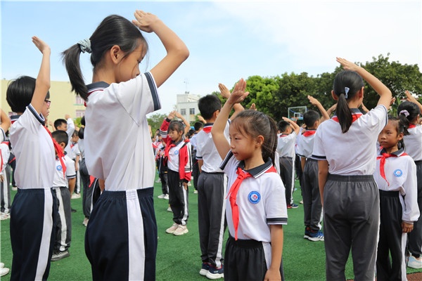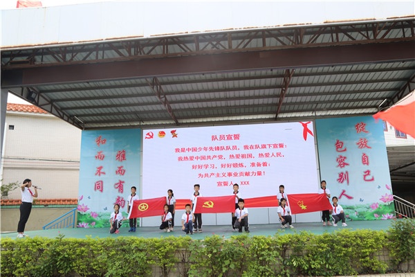 少先隊建隊日期間,各中隊組織開展“請黨放心 強國有我”主題中隊會,引導(dǎo)少先隊員聽黨話、跟黨走,立志為建設(shè)社會主義現(xiàn)代化強國時刻準備著。