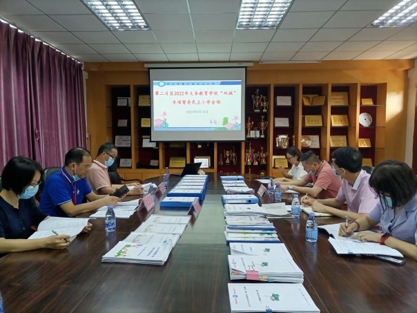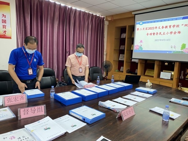 為了進一步指導學校規范辦學行為,落實“雙減”工作,進一步做好2022年秋季學期疫情防控工作,9月14日上午,民主小學迎來第二片區2022年義務教育學校“雙減”專項督導檢查,督導組專家小欖鎮教育和體育事務中心的張宏齊副主任、李正可校長、陳凱冰主任到學校進行實地督導檢查工作。民主小學黨支部書記、校長林宗技及學校行政團隊全程陪同檢查。