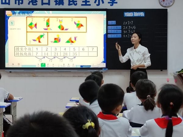 活動第一環節是兩節課例展示。首先是張啟婷老師展示《7的乘法口訣》課例。張老師在課堂上由扶到放,啟發學生類比推理,引領學生自主探索7的乘法口訣,體驗7的乘法口訣的來源,理解每一句乘法口訣的意義,學生在經歷數學知識的形成過程中感悟數學思想。緊接著是吳曉彤老師帶來的《解決問題(1)》。吳老師通過創設生活情境,充分調動學生學習的興趣,引導學生選擇相關數學信息解決生活中的數學問題,學生在自主探究中學會用數學的思維思考現實世界,培養學生的“四能”。