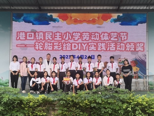 為進一步培育和踐行社會主義核心價值觀,扎實推進文明校園創建工作,傳播陽光正能量,促進學生身心健康成長,豐富校園文化和課余生活,展現學生精神風貌。2023年4月14日下午港口鎮民主小學在操場開展了主題為“美‘輪’美‘繪’共享時光”港口鎮民主小學勞動體藝節之輪胎彩繪DIY活動。由德育處桂玉盛主任,美術組李尚雅、鄢婷三位老師分別帶領四至六年級部分學生,師生共同美化校園環境,讓每一個輪胎“會說話”、“穿新衣”。