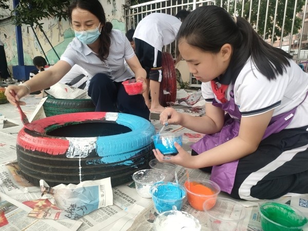 桂主任表示,開展輪胎DIY創意涂鴉活動,給予了同學們發揮創作靈感的機會。讓學生們既參與到了美化校園環境的行列,又提高了學生們的動手能力。這次活動取得了理想效果,不僅給學生們帶來了視覺的享受,又促進了同學之間的交流與協作。讓學生的心靈得到釋放和解壓,也是一次心理調適活動。輪胎DIY涂鴉活動是一次嘗試,接下來,學校還將組織學生們繼續開展各類文體活動,激發他們對學校、對家鄉、對國家的熱愛之情。