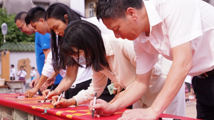 體驗(yàn)活動(dòng)結(jié)束后,胡嬋媛老師帶領(lǐng)全體師生在國(guó)旗下進(jìn)行防溺水安全宣誓,承諾履行防溺水“六不準(zhǔn)”。最后,全體師生有序地在“預(yù)防溺水 從我做起”的安全教育橫幅上簽名,對(duì)自己的安全做出了鄭重的承諾。
