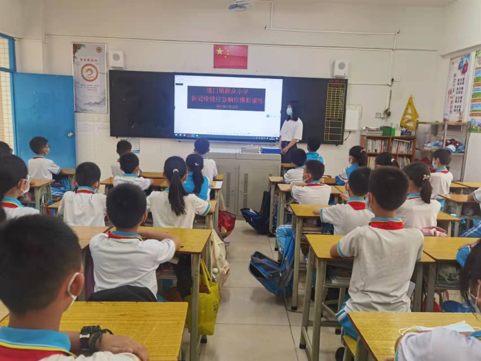 學(xué)校結(jié)合新冠肺炎疫情應(yīng)急響應(yīng)流程,模擬了“學(xué)校接到衛(wèi)生健康部門通知學(xué)校人員是新冠肺炎的密切接觸者”的場景和“學(xué)生在教室上課時出現(xiàn)發(fā)熱”的情景。