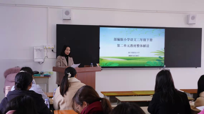 為加強小學(xué)語文教師對統(tǒng)編教材的深層解讀,探討單元整體視域下的教學(xué)策略,促進教師專業(yè)發(fā)展,2月23日,港口鎮(zhèn)小學(xué)二年級語文單元教材解讀活動在群眾小學(xué)五樓教研室舉行。港口鎮(zhèn)教育和體育事務(wù)中心蘇彩南老師和鎮(zhèn)二年級語文任課老師都參加了此次活動。
