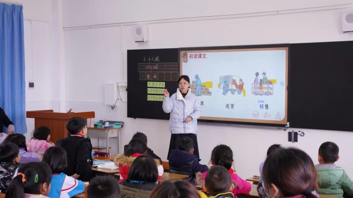 首先進行的是課堂教學(xué)環(huán)節(jié)。姚佳琳老師和蔡敏瑩老師帶領(lǐng)了二(2)班的孩子們進行《千人糕》一課的學(xué)習(xí)。姚老師進行第一課時的識字教學(xué),蔡老師進行第二課時的閱讀教學(xué),她們?yōu)榇蠹艺故玖司实恼n例。學(xué)生的學(xué)習(xí)狀態(tài)積極,課堂參與積極性高,學(xué)習(xí)效果較好。