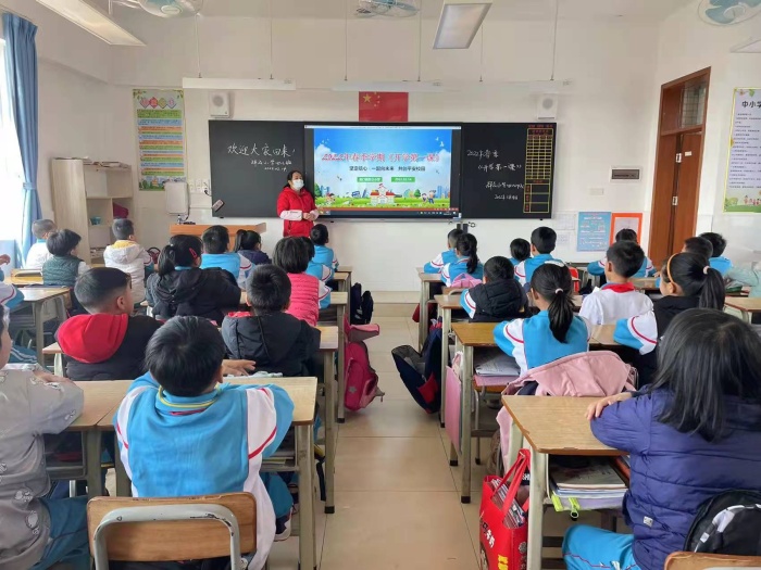 開學典禮結束后,各班班主任在教室里組織開展了開學第一課“堅定信心 一起向未來 共創平安校園”。老師們分別從返校收心教育、新冠肺炎疫情防控、校園安全教育、愛國主題教育、雙減、五項管理四個方面引導同學們盡快適應從寒假生活向學校生活的轉變,調整心態,盡情享受學習和豐富生活。