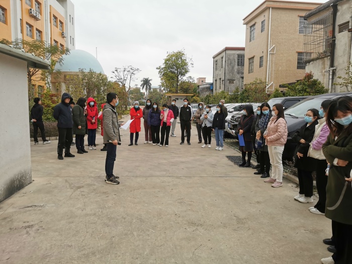 演練正式開始,學校接到上級通報,學生A為新冠肺炎病例的密切接觸者,被轉運后該生核酸檢測結果呈陽性。學校立刻聯系教務處主任,要求立刻與班主任確認該生情況。經確認,該生正在課室上課。班主任得知消息后,其余學生戴上口罩留在課室,把學生A帶到臨時留觀室,了解其最近14天的校內活動軌跡,并把情況告知學校疫情防控專班,最后協助學生A轉運到指定的隔離場所。學校立即啟動應急預案,醫療保障組、消毒組、安全后勤保障組、信息聯絡組及宣傳和心理疏導組做好應急響應準備。