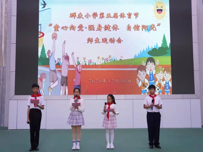 為進一步豐富校園文化生活,增強學(xué)生體質(zhì),培養(yǎng)學(xué)生積極進取的拼搏精神,鼓勵學(xué)生積極參與體育鍛煉,也為營造良好的體育文化氛圍,推動學(xué)校精神文明建設(shè),2021年12月10日,群眾小學(xué)全體師生相聚美麗的校園,舉行第五屆“童心向黨·強身健體 自信陽光”師生校運會。