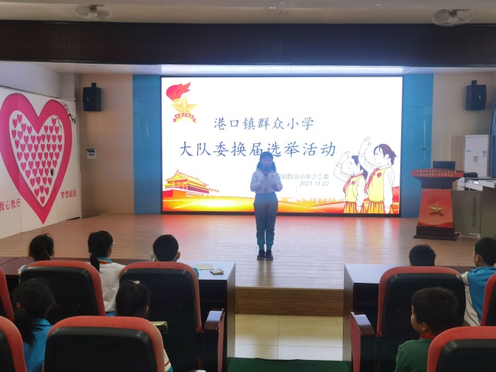競選當天,選手們依序進行時間為1分鐘演講。隊員們自信大方、談吐非凡,介紹了本人的先進事跡、競選崗位優勢,也闡述了對大隊委職責的見解和做好工作的堅定決心。選手們積極向上的精神面貌,贏得了隊員們的陣陣掌聲。隨后,少先隊員代表為心目中的選手投票,少工委成員根據計票結果商議最終大隊委名單。最后,群眾小學少工委主任梁銓華致辭。他希望各位少先隊員認真學黨史,紅領巾心向黨,努力學習,好好工作,愛祖國,愛學校,爭做社會主義建設者和接班人。