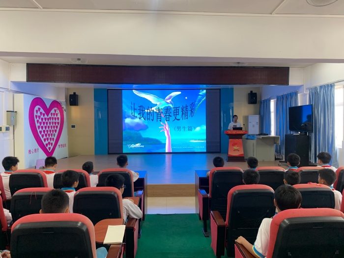 在男生專場中,郭南洪主任通過簡單易懂的講解,“大膽”說出了男生們平時難以啟齒的話題,讓男生們了解了自己青春期身體的變化、心理的變化,又通過真實的案例告訴了男生們早戀的危害性,并引導他們如何正確地與女生交往。男生們若有所思,相信他們對自己男性角色的定位,對于青春期有了深刻的認識。