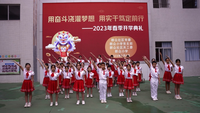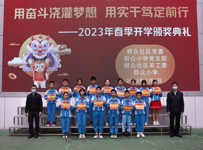 伴隨著2023春天的腳步,在這萬物復蘇、春意萌動的季節(jié),2023年2月6日上午,群眾小學全體師生齊聚學校成長廣場,舉行了2023春季開學典禮暨慈善萬人行捐款活動。