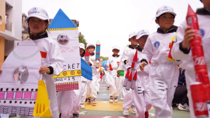 課堂教學展示后,迎來精彩紛呈的運動會開幕式之班級風采展示活動。本次展示活動學校結合學生年齡特點給各年級制定了不同內容的主題。一至六年級的主題依次是科技主題、紅色文化主題、籃球特色主題、勞動教育主題、傳統文化主題和安全教育主題。