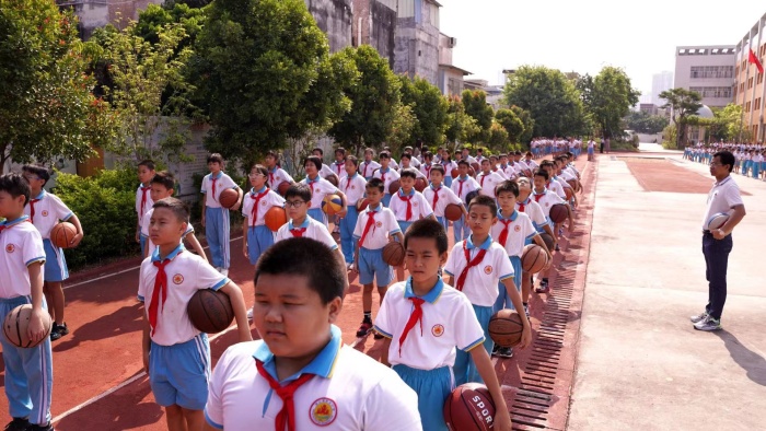 易副鎮長觀看了學校陽光大課間活動。伴隨著歡快而富有節奏的音樂聲,全校同學精神抖擻,左手抱著籃球,邁著堅定的步伐,排著整齊的隊伍小跑進入操場,展示學校特色項目“酷炫籃球”籃球操。同學們氣勢高昂、動作規范一致。組合巧妙和編排精心的籃球操,不僅向我們展示了籃球運動的特點,更是在音樂的襯托下呈現出韻律美。老師們也與學生一起運動,展現出了群眾小學師生團結和諧、積極向上的精神面貌。