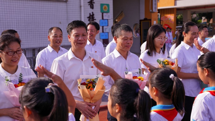 最后,梁銓華校長向全體教師致以最真切的祝福與節日的問候,鼓勵老師們要努力成為習近平總書記提出的“黨和人民滿意的“四有”好教師”,不忘教書育人初心,牢記立德樹人使命,用愛用情用心做好工作,為孩子們的健康成長保駕護航。希望老師們繼續砥礪前行,不忘初心,方能擔當育人使命,做一個卓越的教育人;希望同學們能用實際行動來感恩老師,回報老師。