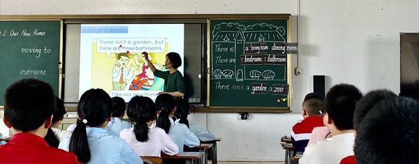 石特小學原家惠主任現場展示了四年級下冊Unit2 Our New Home第一課時的教學。她通過逐圖講故事,挖掘文本情感內容,讓學生在對話中反復滲透、感知新語言,加強學生對語言的聽說和模仿能力,最后通過學生角色扮演和故事復述檢測學生的語言輸出效果。在原主任的耐心引導下,本節課學生全程投入,課堂學習氣氛濃厚,贏得了在場老師們的贊賞。許永倩老師則對四年級下冊Unit2 Our New Home第四課時(語音教學)進行了說課,她認為在單元整體大觀念設計下,對教材和課后補充讀物之間要有機結合,盡力為學生的語音學習提供生動有趣的學習情境。