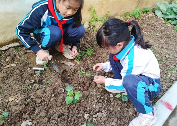 植一株綠色,溢一片春光。學校專門開辟了一塊種植園。勞動實踐課上,同學們認領了自己班級的田地,化身為一個個“小農人”,他們個個精神昂揚、相互配合,有的踩鍬挖坑、有的扶苗栽苗、有的培土澆水……種植現場到處都是忙碌的身影和勞動的歡聲笑語,呈現出一派如火如荼的勞動景象。
