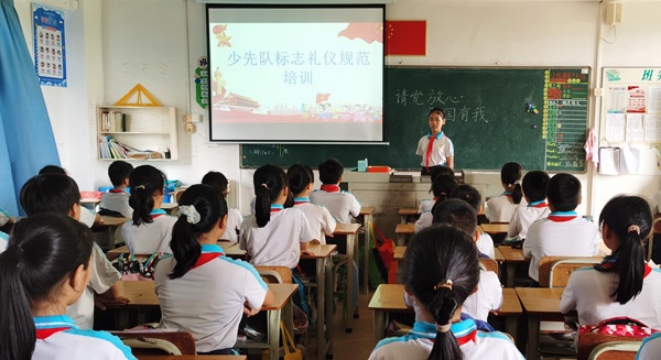 活動前夕,各中隊開展了“少先隊標志禮儀規范”隊課,由各中隊長主持,引導隊員們再次認識隊旗、隊徽,學習佩戴紅領巾,練習敬隊禮、呼號,熟悉隊歌、誓詞。