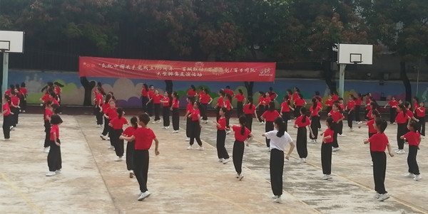 自比賽通知發布以來,學校體藝科組的老師們立即統籌開會,制定比賽及訓練方案。方案確定了比賽的曲目是2021年全國排舞推廣曲目《沒有共產黨就沒有新中國》,并從三至六年級中選用150余人展開訓練,備戰比賽。