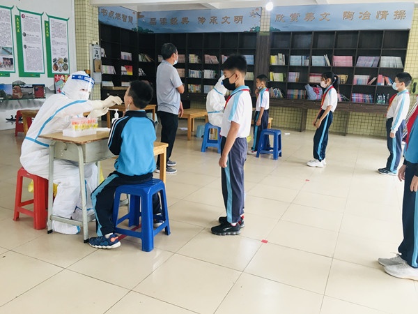 復(fù)課第一天,石特小學(xué)嚴(yán)格落實(shí)新一輪全員核酸檢測(cè)工作的要求,對(duì)全校師生及后勤人員實(shí)施核酸檢測(cè)。學(xué)校采用分時(shí)分批分段的方式進(jìn)行,檢測(cè)過(guò)程快速有序。嚴(yán)格遵守“一米線”規(guī)定,佩戴口罩,在現(xiàn)場(chǎng)工作人員指引下,掃碼錄入檢測(cè)信息,逐一順利完成檢測(cè)工作。